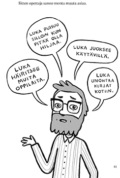 Lukalla on kiva perhe ja paljon kavereita. Lukalla on myös ongelmia. Luka ei jaksa tehdä tehtäviä koulussa. Luka heittää kenkiä ja juoksee käytävällä