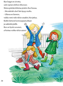Vuorovaikutuksellinen teksti ottaa lukijansa mukaan ja riemastuttava kuvitus kuljettaa lasten iloiseen maailmaan.