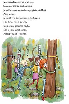 Vuorovaikutuksellinen teksti innostaa pohtimaan omia kokemuksia ja tunteita. Riemastuttava kuvitus vie lukijansa lasten iloiseen maailmaan.
