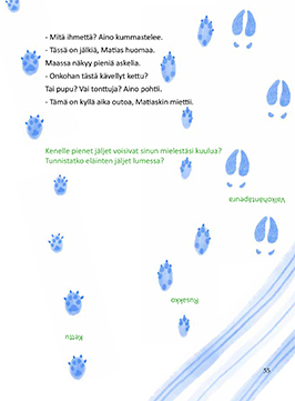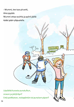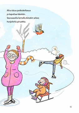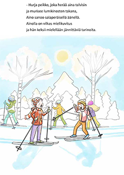 Syysjuhlien jälkeen sataa ensilumi. Mikä riemu! Pian päästään luistelemaan ja pulkkamäkeen. Mitähän hiihtoretkellä tapahtuu? Asuuko metsässä lumihirviöitä? Entä minne vanha rattikelkka katoaa? On hauskaa ratkoa arvoituksia yhdessä ystävien kanssa.