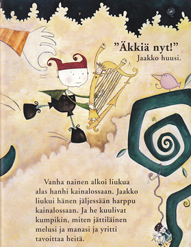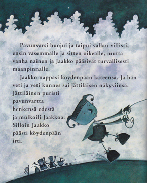 Jaakko ja pavunvarsi kertoo riemastuttavalla tavalla vanhan tarinan uudelleen. Mitä tapahtuukaan Jaakolle, kun hän vaihtaa lehmän taikapapuihin ja käy vierailulla jättiläisen linnassa? Tarinan omaperäinen kuvittaja Niamh Sharkey on palkittu irlantilainen graafikko.