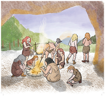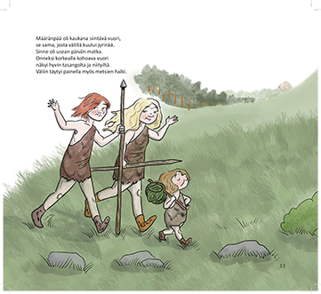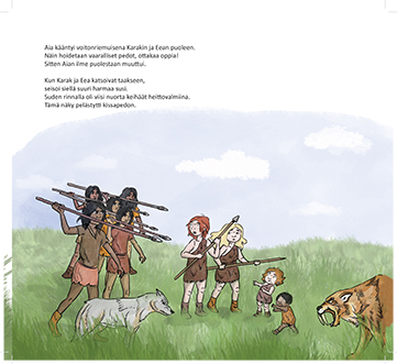 Tämä kuvitettu lasten- ja nuortenkirja jakautuu kahteen osaan. Ensimmäisessä osassa kerrotaan fiktiivinen tarina siitä, kuinka neandertalilaiset kohtasivat ensi kertaa Afrikasta saapuneet nykyihmiset. Pääosassa ovat neanderilaissisarukset. Sisarukset törmäävät myös vaarallisiin petoihin ja hämmästelevät uusien tulijoiden aseita.