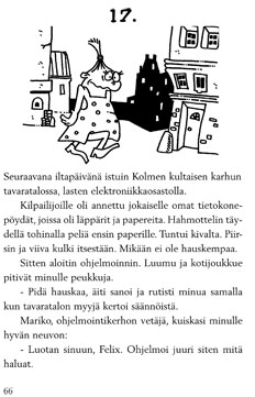 Prahassa majaileva Felixin perheessä vaahto ja räkä roiskuvat. Siitä pitävät huolen isosiko Pauliina ja perheen räkivä lemmikkirotta. Hauskinta Felixin mielestä on robotteja rakentelevan isosiskon nimittely. Ja parasta on seikkailupelien ohjelmointi erilaisine hirviöineen vauhtiystävä Luumun kanssa.