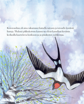 Vanha ja nuori koivu olivat hyviä ystäviä. Päivisin he katselivat yhdessä taivaan lintuja ja yöllä kimaltelevaa tähtitaivasta. Kaikella on aikansa, vanhalla puulla oli tapana sanoa. Eräänä yönä hurjasti puhaltava tuuli kaatoi puuvanhuksen. Ennen kuolemaansa puuvanhus ehti antaa pikkukoivulle arvokkaan lahjan. Lahja hälvensi pikkukoivun suurta surua.