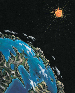 Eräänä päivänä planeetan rauha rikkoutuu, kun salaperäinen pölynimurikauppias tömähtää isolla raketilla lasten keskuuteen. Hän on ikiaikoihin ensimmäinen aikuinen planeetalla. Kauppias opettaa lapset lentämään ja tarjoaa heille kovaa menoa ja reipasta ilonpitoa. Mutta kaikella on hintansa. Lapset joutuvat huimiin ja vaarallisiin seikkailuihin, kun heidän koko maailmansa joutuu uhan alle. Tarina sinisestä planeetasta on nerokas ja mieleenpainuva seikkailu, jossa on kaikki klassikon ainekset.